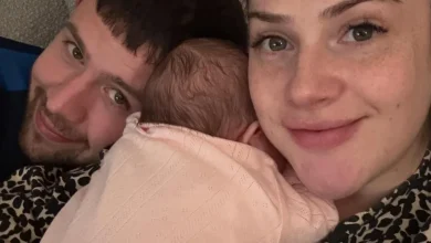 Isabel and Adam announced Georgie’s birth on Instagram, revealing that she had been born on February 11, weighing 8lbs 5oz.